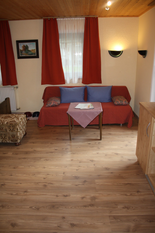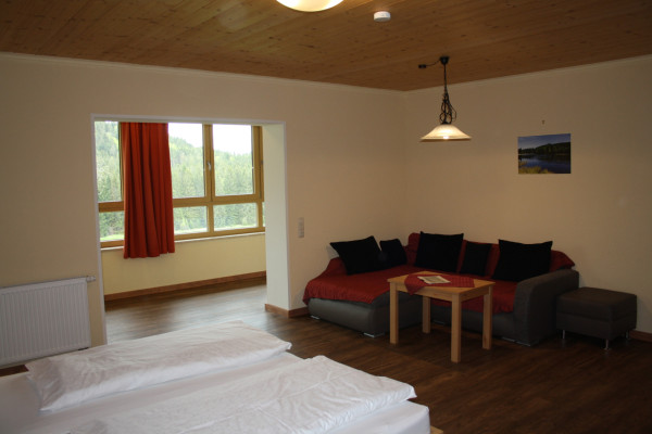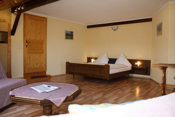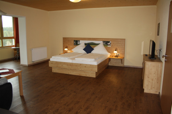 Unser Doppelzimmer ist ca. 28 qm groß und ist ausgestattet mit Doppelbett, Sofa, Bad mit Dusche/WC.