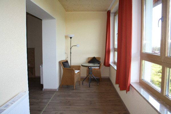 Unsere ca. 65 qm großen neugebauten Suiten befinden sich im 1.OG und haben einen Wintergarten Richtung Hundewiese und Wald, der zum verweilen einlädt. Sie sind ausgestattet mit einem Doppelbett und einem Ecksofa mit Schlaffunktion. Sowie Sitzgelegenheiten im Wintergarten.